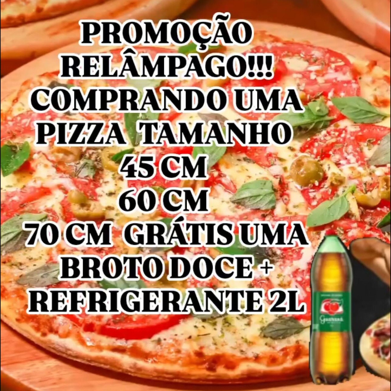 PROMOÇÃO RELÂMPAGO!!! COMPRANDO UMA PIZZA 47CM, 60CM OU 70CM GRÁTIS BROTO DOCE + REFRIGERANTE 2L
